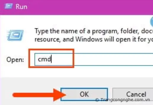 Bước 1: Nhấn tổ hợp phím Windows + R sau đó nhập vào 'cmd ' và nhấn OK để xác nhận truy cập vào Command Prompt.