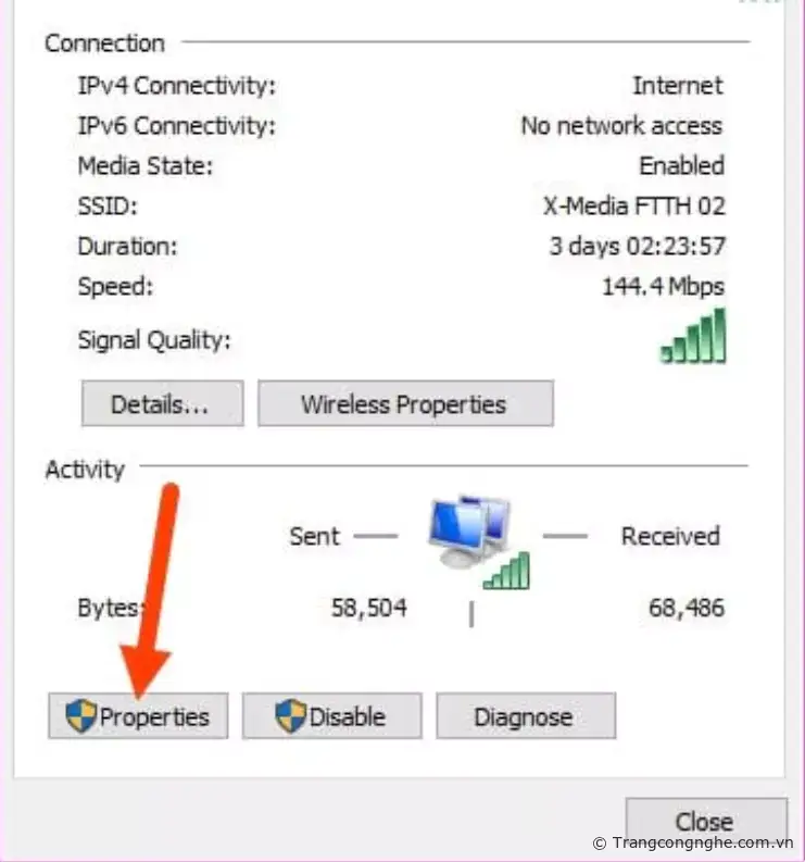 Bước 3: Tiếp theo click vào Properties , tại đây cho phép bạn tùy chỉnh nhiều thông số hơn liên quan đến mạng.
