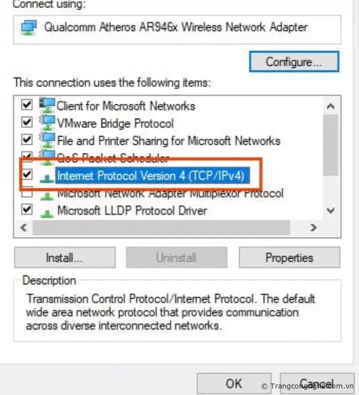 Bước 4: Giao diện Wifi Properties hiện lên, tìm kiếm dòng có tên là Internet Protocol Version 4 và click đúp chuột vào trong đó.