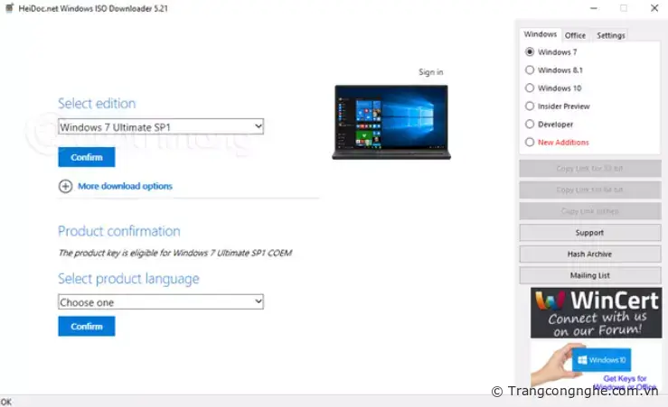 Trong bài viết này chúng tôi sẽ tổng hợp một số nguồn để bạn tải file ISO Windows 7. Trước đây,TCN có giới thiệu với các bạn cách tải file ISO Windows 7 bằng TechBench nhưng công cụ đó đã bị thay thế bằng Media Creation Tool nên chúng ta không còn nguồn chính thức, miễn phí nào từ Microsoft để tải Windows 7 cả. Vì là nguồn không chính chủ, nên rất khó đảm bảo rằng chúng sạch 100%, các bạn tải về thì cứ quét virus một lượt, cài xong quét phát nữa cho chắc ăn nhé. Trước có thể check được checksum SHA1, nhưng trang gốc chứa SHA1 của file ISO Windows 7 gốc đã bị Microsoft gỡ nên đành chịu thôi.