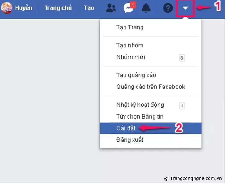 Bước 1: Bạn nhấn nút mũi tên xổ xuống bên góc phải màn hình máy tính, chọn mục Cài đặt.