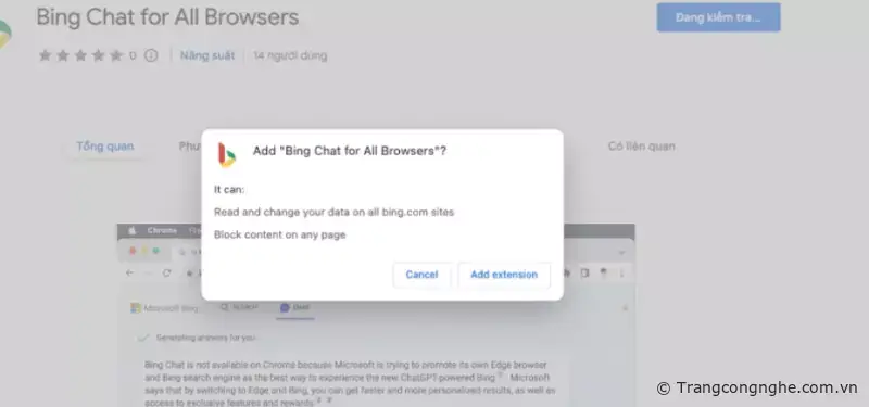 B2: Tiến hành cài đặt Bing AI trên trình duyệt. Chọn nút 'Thêm vào Chrome' để xác nhận cài đặt (Vì là ứng dựng chưa được google)