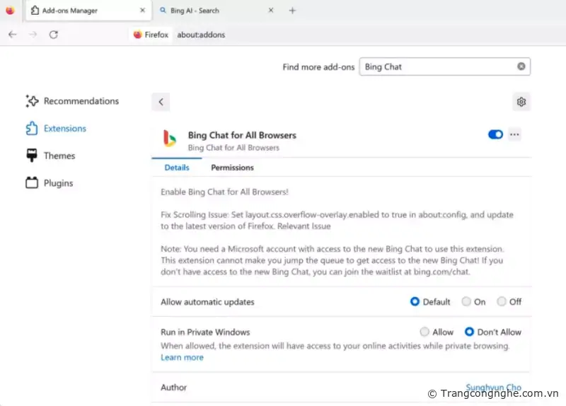 Hiện tại thị trường Việt Nam Bing AI (Bing Chat) chưa được kích hoạt sử dụng trên trình duyệt vì vậy chúng ta cần phải cài đặt một số Plugin trên trình duyệt để có thể sử dụng đầy đủ chức năng.