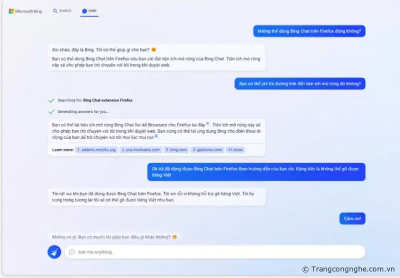 B1: Đối với trình duyệt chrome bạn có thể tải tiện ích trên Google Extension : Bing Chat for All Browsers | Tải Bing Chat for All Browsers trên Firefox | Mã nguồn Github của Bing Chat Browsers