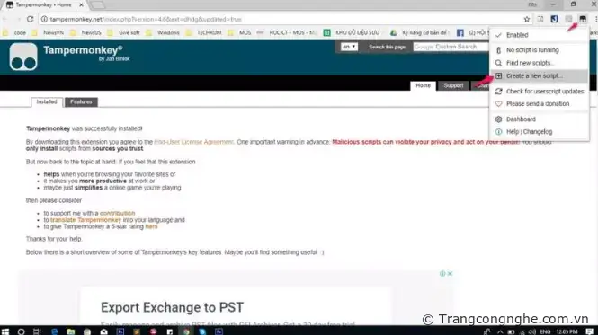 Bước 3: Click phải vào icon Tampermonkey, sau đó Create a new script