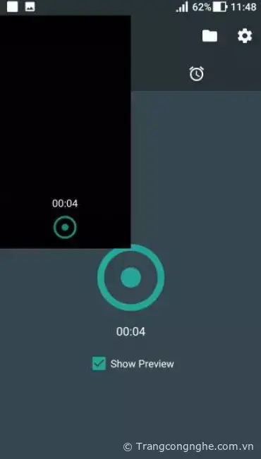- Quay bình thường: Mở ứng dụng lên và chọn vào biểu tượng Play, chọn vào Show Preview nếu muốn xem màn hình quay. Ứng dụng sẽ quay với chất lượng trung bình, thời lượng không giới hạn.