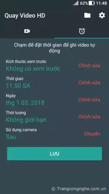 Ứng dụng đơn giản nhưng có rất nhiều tính năng. Bạn có thể hẹn giờ quay trước, quay khi màn hình tắt hình hay tùy chọn chất lượng quay video…