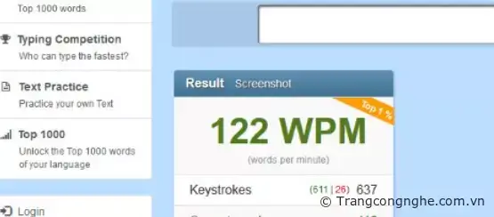 - Tốc độ đánh máy thấp: Dưới 60WPM