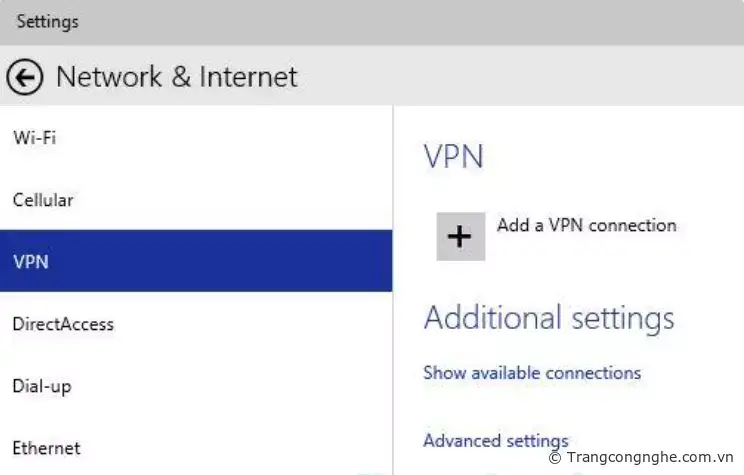 Bước 3: Giao diện mới hiện ra, chọn VPN ở bên trái và click tiếp vào Add A VPN Connection.