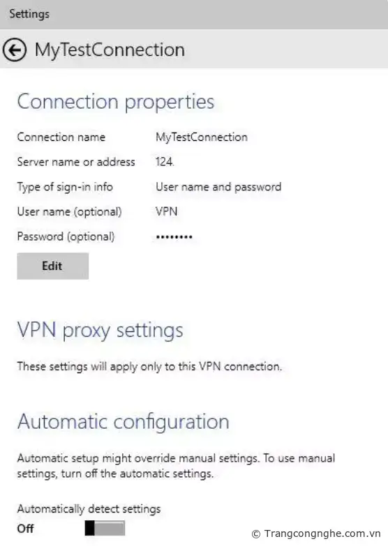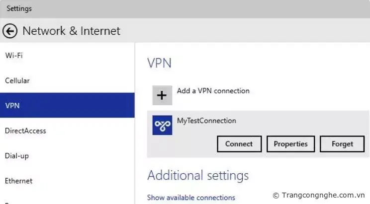 Nếu muốn thay đổi hoặc chỉnh sửa thông tin của mạng VPN vừa khởi tạo này, bạn có thể chọn vào Properties hoặc Advanced options bên cạnh nút Connect.
