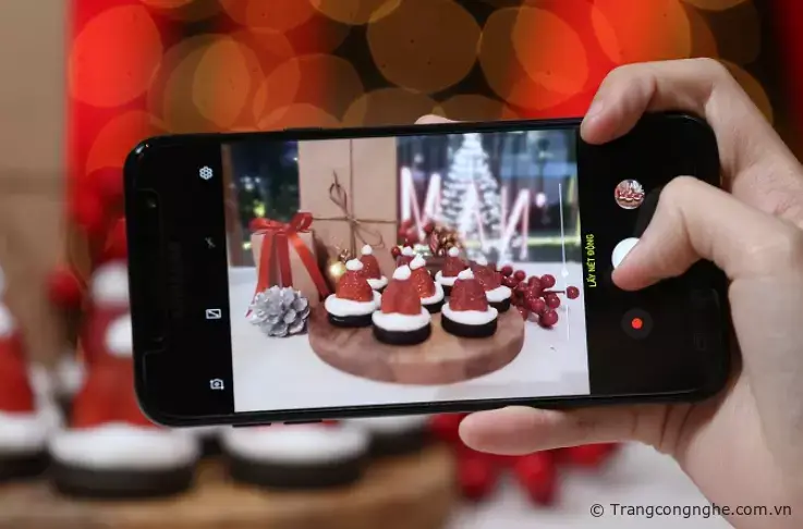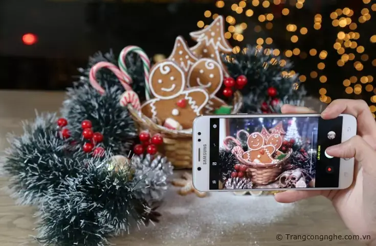 Vấn đề ánh sáng, theo Foodstylist này, bạn nên chụp đồ ăn bên cạnh cửa sổ có ánh sáng khuếch tán. Trường hợp chụp ảnh ban đêm trong phòng, với những ánh đèn ở phía sau hậu cảnh thường phải dùng đến những công cụ hắt sáng và phản quang. Nhưng không phải lúc nào Nhựt cũng muốn 'vác' hết những công cụ to cồng kềnh theo bên cạnh. Giải pháp nhanh chóng trong những lúc này chính là tận dụng khả năng chụp ảnh thiếu sáng trên chiếc điện thoại di động nhỏ gọn. Chiếc Galaxy J7+ được Nhựt chọn là biện pháp thay thế cho những công cụ hắt sáng nặng nề, to tướng.