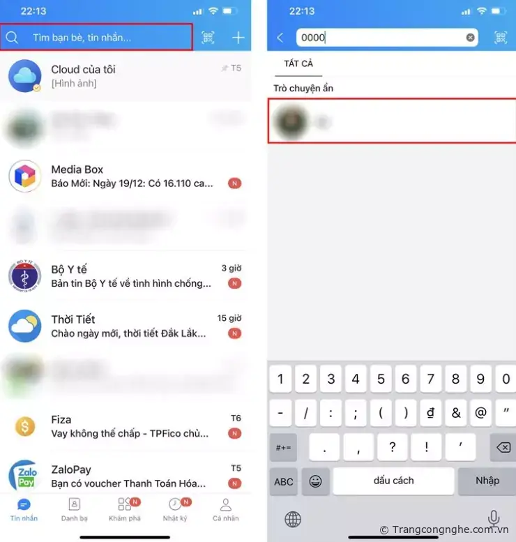 1. Tìm qua Password tin nhắn ẩn trên Zalo