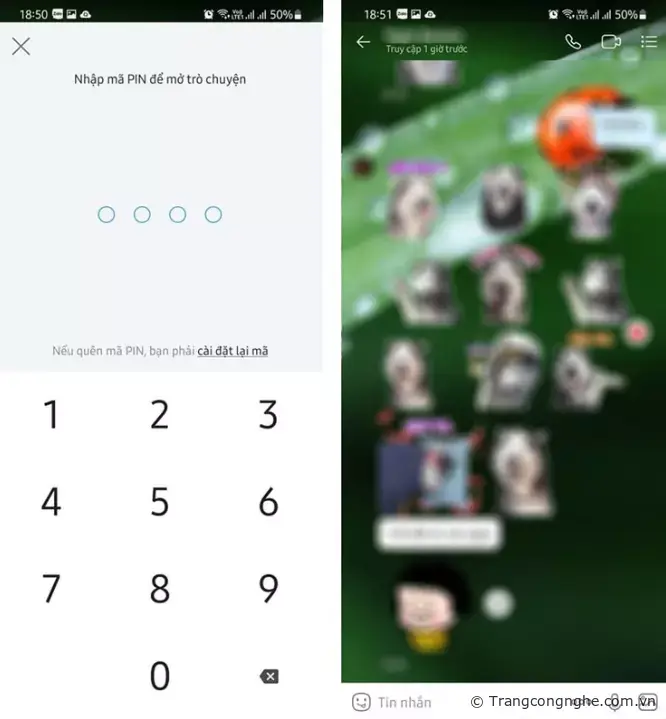 Bước 2. Bạn nhập mã PIN để mở cuộc trò chuyện nhé.