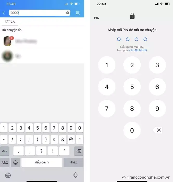 Sau đó, bạn dùng 2 cách trên để tìm cuộc trò chuyện ẩn, bạn sẽ thấy thông báo và nhập mã PIN để nhắn tin trả lời nhé.