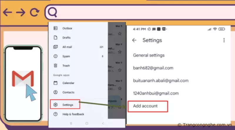 Trên điện thoại iPhone bạn cũng có thể đăng nhập Gmail trên trình duyệt web bằng cách: Nhập Gmail.com vào thanh địa chỉ trình duyệt, rồi nhập email hoặc số điện thoại, mật khẩu vào và nhấn Đăng nhập. Đợi một lát là quá trình đăng nhập Gmail thành công, bạn thoải mái quản lý hòm thư của mình trên điện thoại.