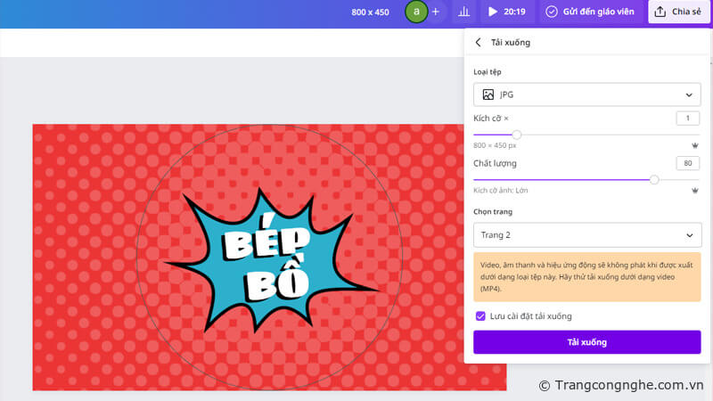 Bước 5: Ấn Chia sẻ > chọn Tải xuống > lựa chọn định dạng tệp và cuối cùng rồi nhấn Tải xuống để hoàn tất.
