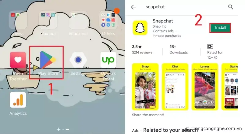 B1: Truy cập trực tiếp đường dẫn cửa hàng Google Play : https://play.google.com/store/apps/details?id=com.snapchat.android&hl=vi&gl=US