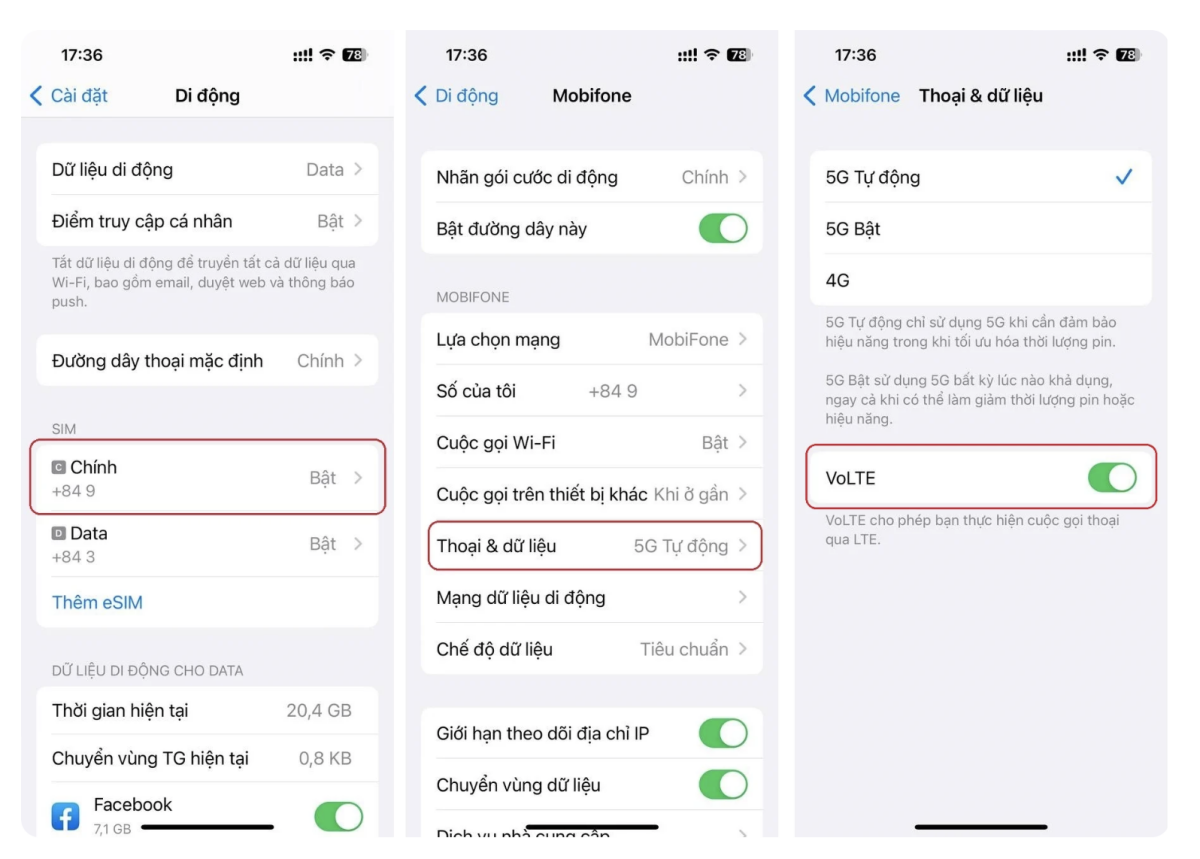 - Điều kiện: Sử dụng SIM 4G MobiFone và đã đăng ký data. Điện thoại hỗ trợ VoLTE và kích hoạt tính năng VoLTE trên điện thoại