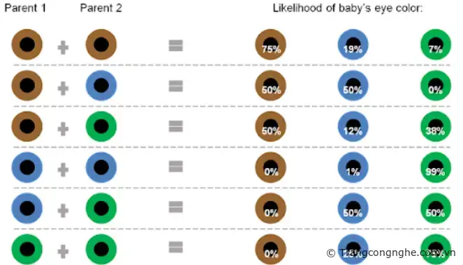 Có đến 74% màu sắc của đôi mắt được quyết định bởi gen với tên khoa học là OCA2 và nó nằm ở trên nhiễm sắc thể số 15. OCA2 cũng là mẫu gen có tác động mạnh mẽ nhất đến màu tóc và màu sắc của da. Bên cạnh đó, màu mắt cũng có thể được quyết định do tác động từ yếu tố ánh sáng tương tác với tròng mắt của từng người.