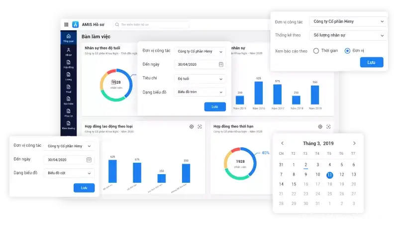 - Amis thông tin nhân sự: HR có thể quản lý đầy đủ và khoa học toàn bộ thông tin của nhân viên, dễ dàng cập nhật, chỉnh sửa, trích xuất; kết nối với phần mềm ký điện tử để ký hợp đồng lao động đảm bảo tính pháp lý; giúp ban lãnh đạo nắm bắt tức thời tình hình, dự đoán nguy cơ và ra quyết định điều hành kịp thời thông qua hệ thống biểu đồ trực quan trong quản trị nguồn nhân lực.