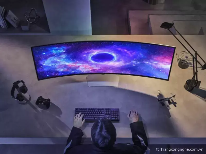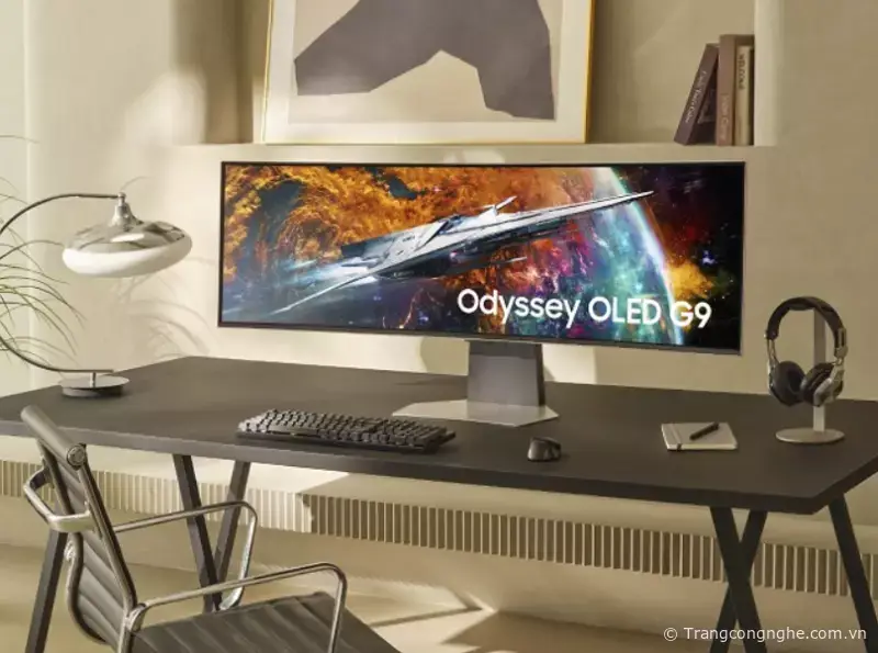 Tổng thể, Odyssey G9 của Samsung có kích thước lớn đến 49 inch với tỷ lệ màn hình 32:9, độ cong lên tới 1800R và độ phân giải Dual Quad High Definition (DQHD; 5.120 x 1.440), là màn hình OLED đầu tiên sở hữu các tính năng này. Tốc độ phản hồi cực nhanh chỉ với 0.03ms và tần số quét 240Hz giúp game thủ có lợi thế lớn trong việc xử lý và phản ứng nhanh trong game.