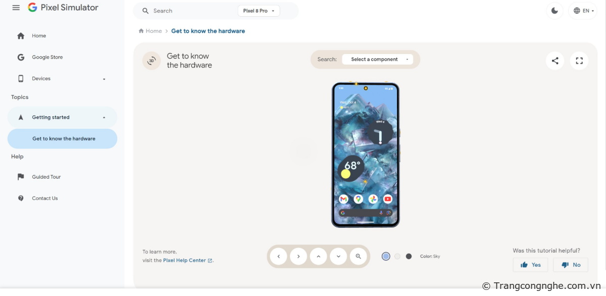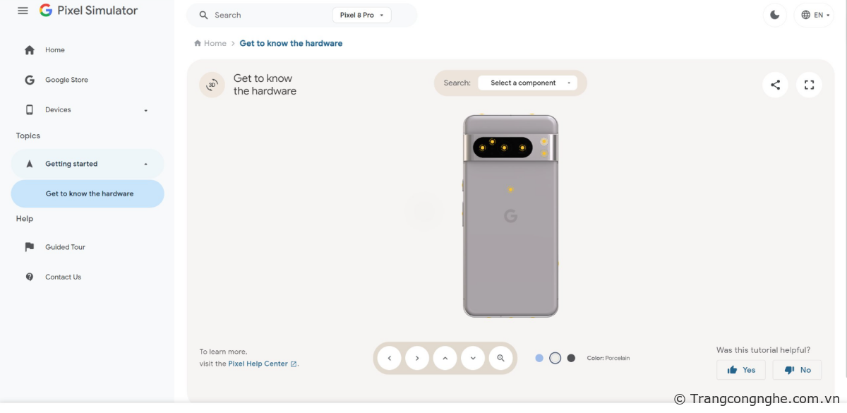 Thông tin này được phát hiện bởi người dùng Twitter có tên Dylan Roussel khi anh tình cờ tìm thấy một trang web mô phỏng Pixel 8 Pro. Điều đáng ngạc nhiên là trang web này được tạo ra bởi chính Google và nó cung cấp cho người dùng cái nhìn trực quan nhất về dòng sản phẩm chưa ra mắt của họ. Khi truy cập vào địa chỉ https://pixel.withgoogle.com/Pixel_8_Pro, người dùng có thể xem chi tiết về thiết kế, màu sắc, camera và màn hình của Pixel 8 Pro. Tuy nhiên, thông tin này đã được ẩn đi sau một thời gian ngắn sau đó.