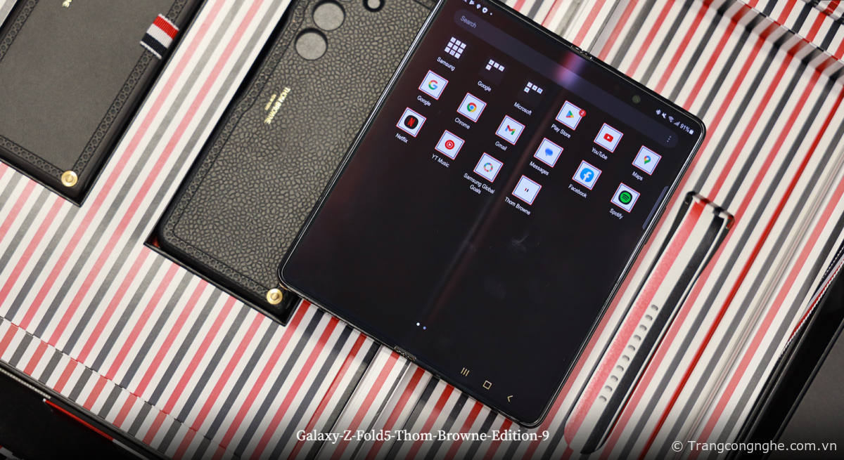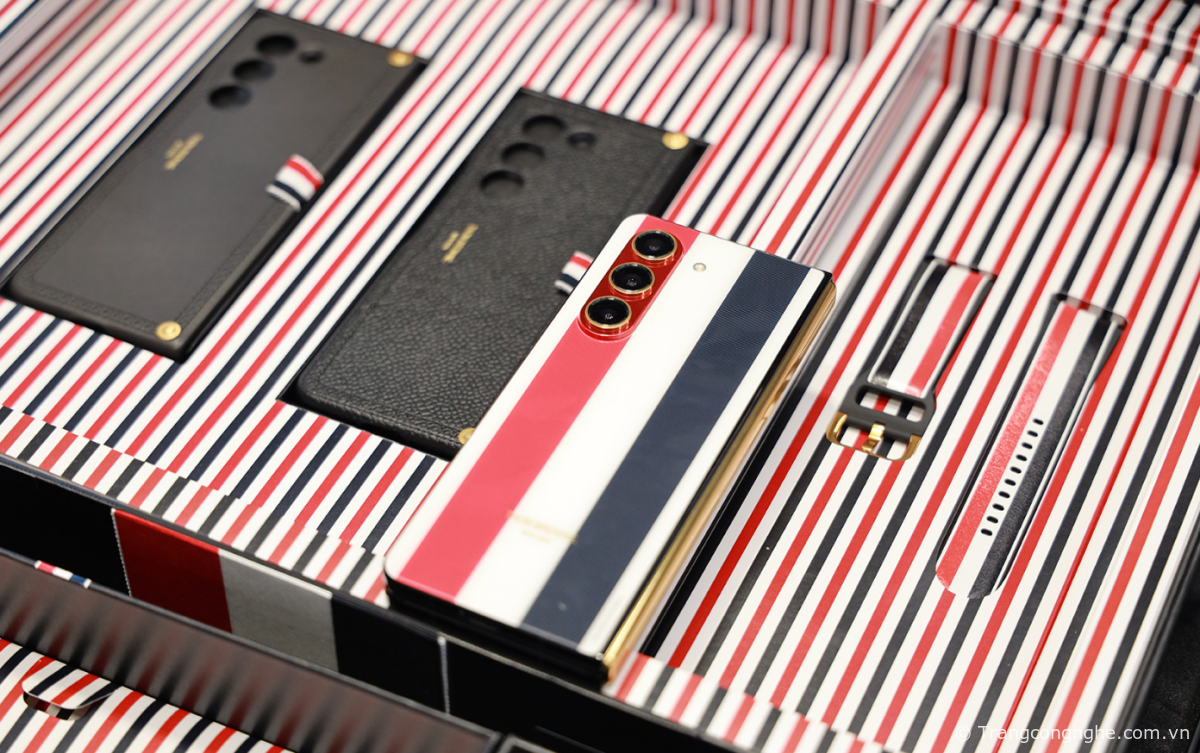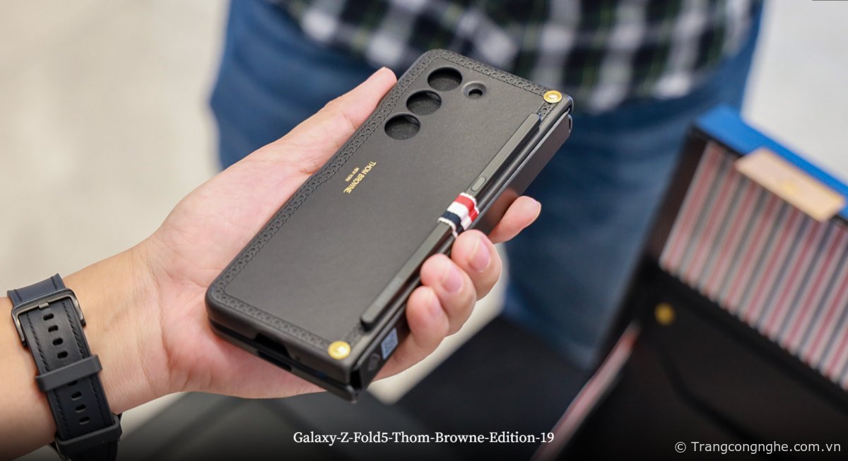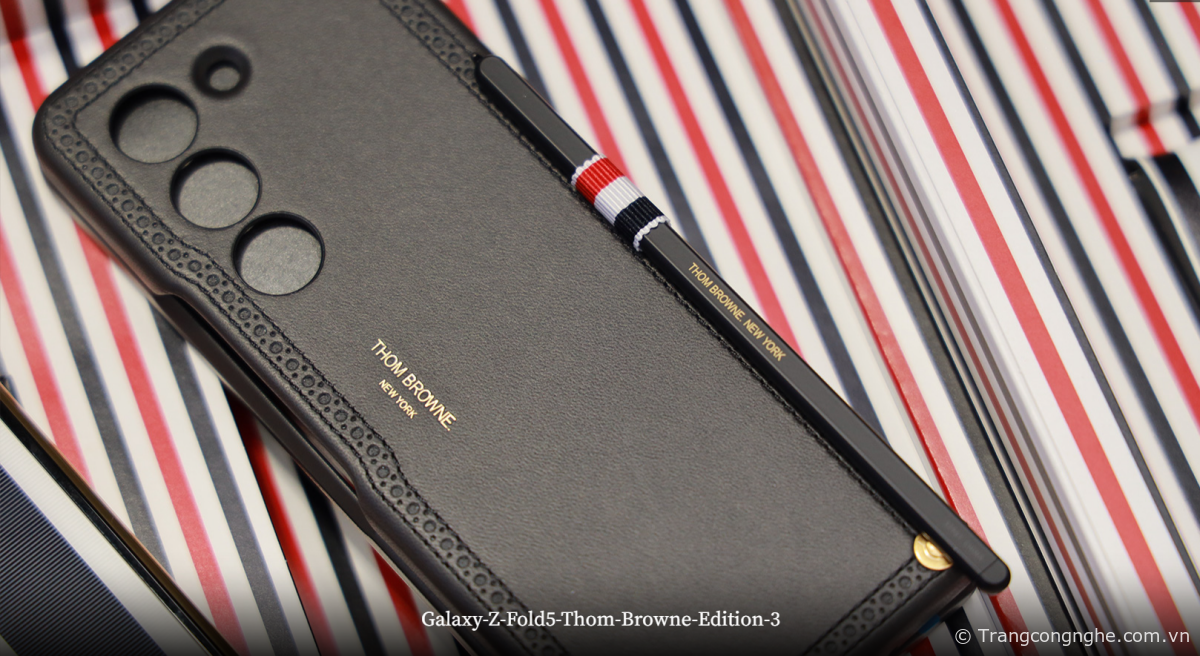 Samsung và Thom Browne tiếp tục hợp tác trong lĩnh vực di động và ra mắt phiên bản đặc biệt Galaxy Z Fold5 Thom Browne Edition. Phiên bản này tiếp tục mang đậm phong cách "Americana" và được đánh giá cao về thiết kế tinh tế, sang trọng. Galaxy Z Fold5 Thom Browne Edition không chỉ là một chiếc điện thoại gập, mà còn bao gồm một bút S Pen, một chiếc Galaxy Watch6, hai ốp lưng và hai dây da thay thế. Tất cả những phụ kiện này đều thể hiện sự sang trọng và cao cấp. Phiên bản này được giới hạn bán ra tại một số thị trường, trong đó có Việt Nam với số lượng chỉ 100 sản phẩm và giá 86 triệu đồng.