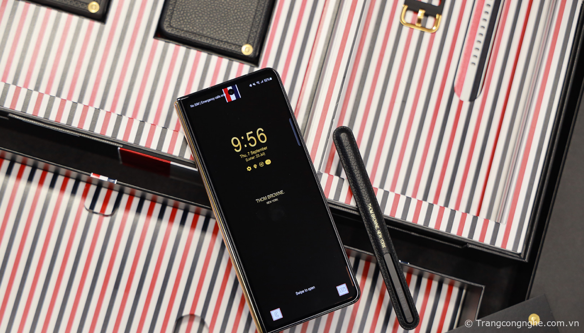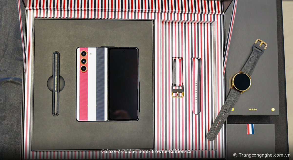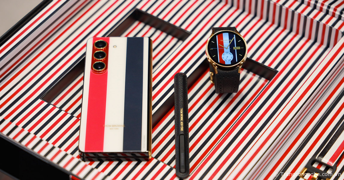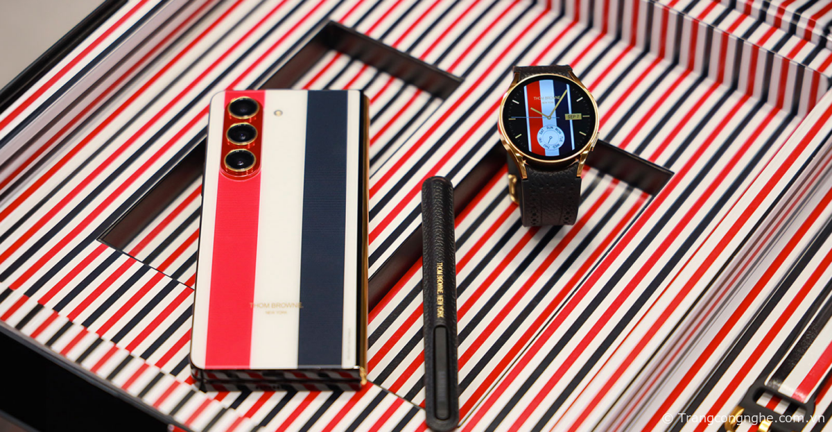 Samsung và Thom Browne tiếp tục hợp tác trong lĩnh vực di động và ra mắt phiên bản đặc biệt Galaxy Z Fold5 Thom Browne Edition. Phiên bản này tiếp tục mang đậm phong cách "Americana" và được đánh giá cao về thiết kế tinh tế, sang trọng. Galaxy Z Fold5 Thom Browne Edition không chỉ là một chiếc điện thoại gập, mà còn bao gồm một bút S Pen, một chiếc Galaxy Watch6, hai ốp lưng và hai dây da thay thế. Tất cả những phụ kiện này đều thể hiện sự sang trọng và cao cấp. Phiên bản này được giới hạn bán ra tại một số thị trường, trong đó có Việt Nam với số lượng chỉ 100 sản phẩm và giá 86 triệu đồng.