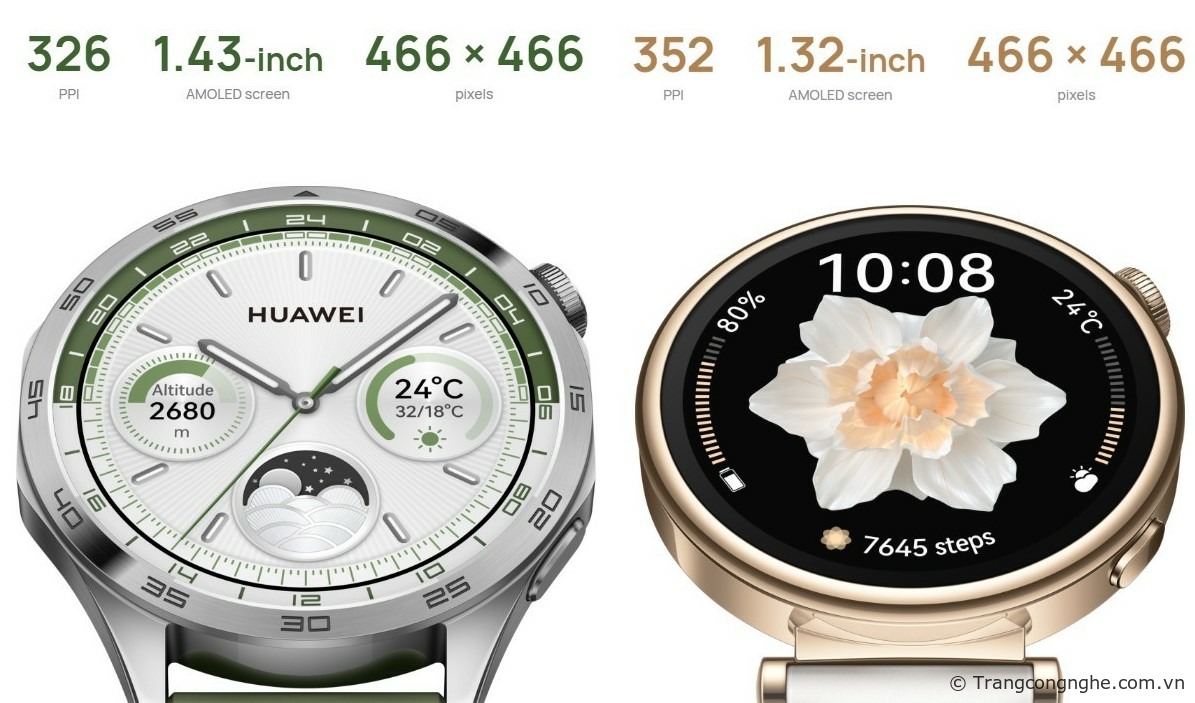 Huawei đã chính thức công bố Huawei Watch GT thế hệ thứ 4 với hai tùy chọn kích cỡ 41mm và 46mm, bộ đôi Watch GT4 mới được nâng cấp với công nghệ TruSeen 5.5+, đây là một bộ cảm biến và thuật toán mới để cung cấp khả năng theo dõi sức khỏe chính xác và chi tiết hơn.