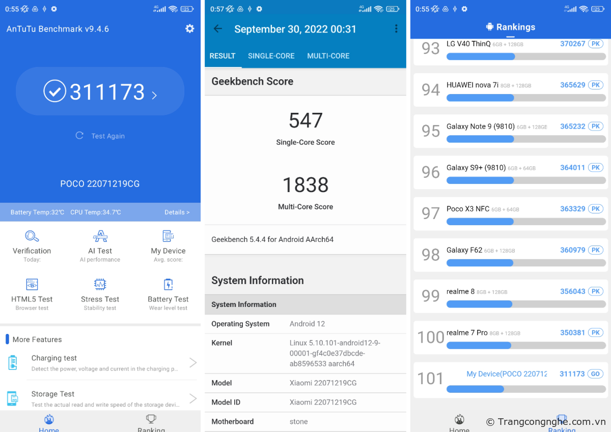 Điểm hiệu năng mà Xiaomi Redmi Note 12 đạt được: