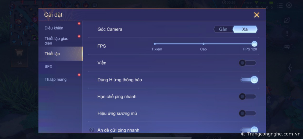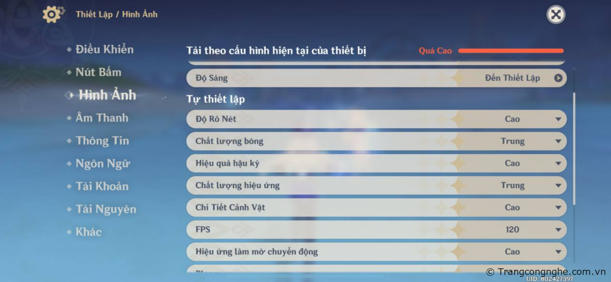 - Cấu hình trải nghiệm game sẽ được đặt ở mức cao nhất với tốc độ khung hình (FPS) 120.