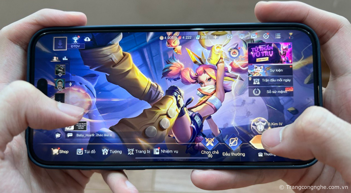 iPhone 15 Pro Max không gặp khó khăn nào khi xử lý hiệu ứng hình ảnh và đồ họa trong tựa game "MOBA quốc dân". Ngay cả khi game Liên Quân Mobile ngày càng nặng nề hơn, iPhone 15 Pro Max vẫn hoạt động mượt mà và ổn định.