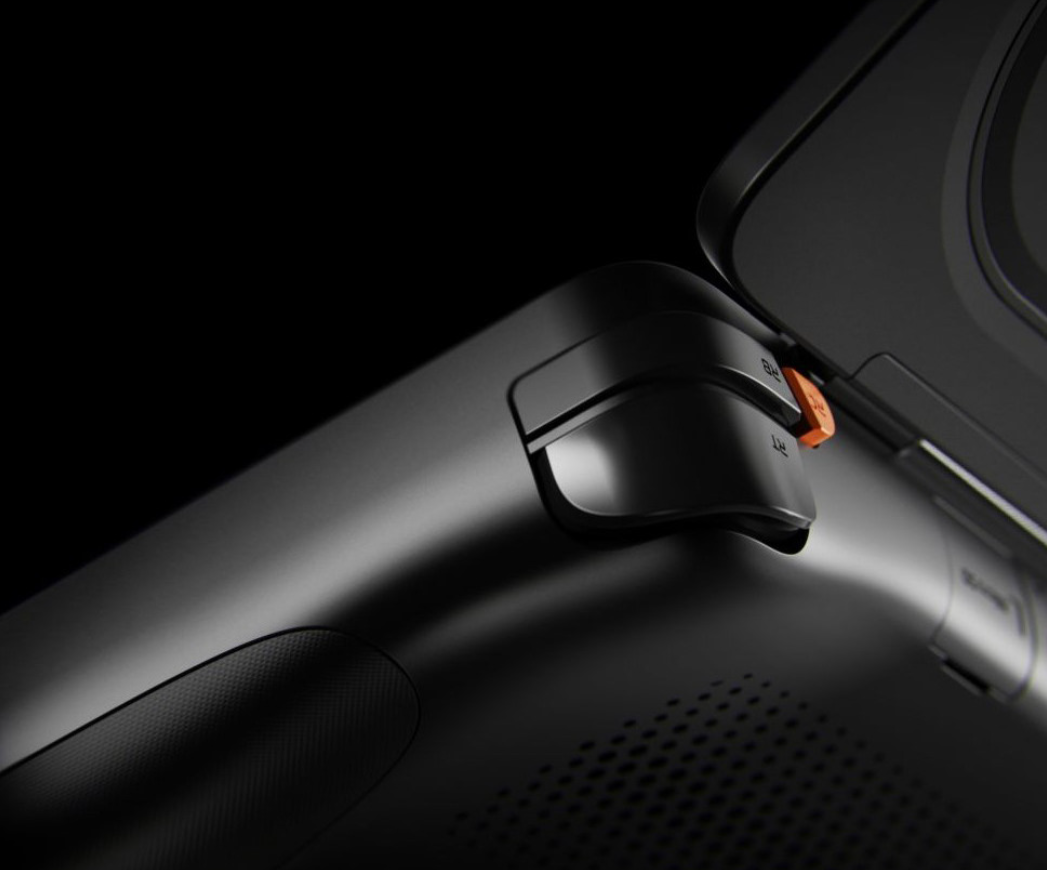 Mở nắp máy lên, chúng ta sẽ có một thiết bị chơi game màn hình lớn, phía dưới là bàn phím đầy đủ, 2 khu vực đặt Joystick, Numpad và các phím chức năng được đặt ở 2 cạnh bên bàn phím giúp thao tác chơi game thoải mái hơn. Các phím Trigger và Shoulder cũng được hỗ trợ nhằm thực hiện các thao tác nhanh. Có vẻ như Flip sẽ trang bị tính năng bảo mật bằng vân tay, cùng một trackpad cỡ nhỏ giúp điều hướng con trỏ chuột.