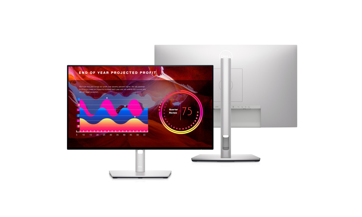 Cả màn hình U2424H và U2424HE đều có thiết kế đẹp mắt với viền mỏng và lớp hoàn thiện màu bạc bạch kim sang trọng. Chân đế của màn hình cho phép điều chỉnh độ cao linh hoạt tới 150mm, góc nghiêng từ -5° đến 21°, góc xoay từ -45° đến 45° và xoay hoàn toàn 90° cung cấp cho người dùng góc nhìn dọc. Cụm phím vật lý điều hướng dạng Joystick dễ dàng điều chỉnh mà không cần phải nhìn từng phím bấm.