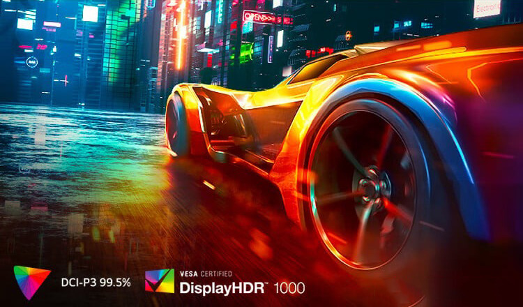 LG cho biết 27GR95UM có đèn nền 1560 vùng, giúp tăng cường độ tương phản và mang lại hình ảnh sống động, chân thực, cần thiết cho trải nghiệm chơi game. Màn hình được chứng nhận HDR1000, đảm bảo dải động cao cho màu sắc và độ sáng tốt hơn. Nó bao phủ tới 99,5% gam màu DCI-P3, giúp màu sắc hiển thị rực rỡ và chính xác hơn.