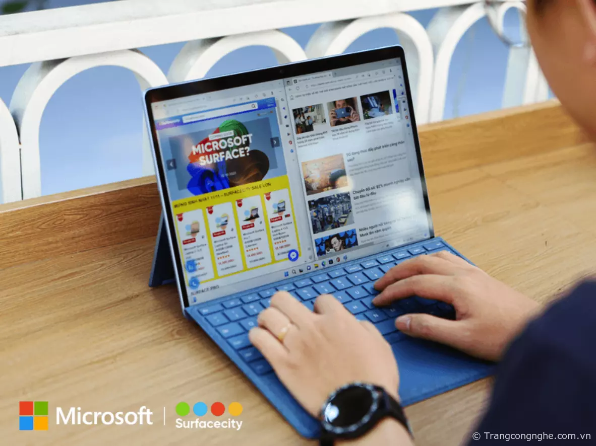 Surface Pro là minh chứng rõ ràng nhất cho sự kết hợp hoàn hảo giữa tính di động và hiệu năng. Với khả năng chuyển đổi dễ dàng giữa laptop và máy tính bảng, Surface Pro là người bạn đồng hành lý tưởng cho những người dùng luôn di chuyển. Dù bạn là sinh viên, nhân viên văn phòng hay một người làm việc tự do, Surface Pro luôn sẵn sàng đáp ứng mọi nhu cầu của bạn. Khách hàng có thể tham khảo trực tiếp các mẫu sản phẩm Surface Pro tại website chính thức của Surface City: https://surfacecity.vn/surface-pro