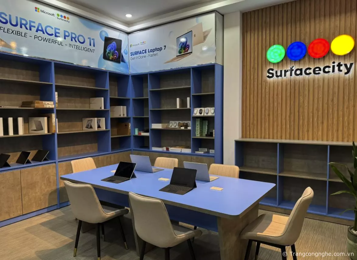 Surface City là một không gian trải nghiệm công nghệ đỉnh cao, nơi bạn được đắm mình trong thế giới Surface tiên tiến của Microsoft. Tại đây, bạn sẽ tìm thấy tất cả các dòng sản phẩm Surface mới nhất, từ những chiếc laptop mạnh mẽ, linh hoạt đến những chiếc máy tính bảng thời trang, đa năng.