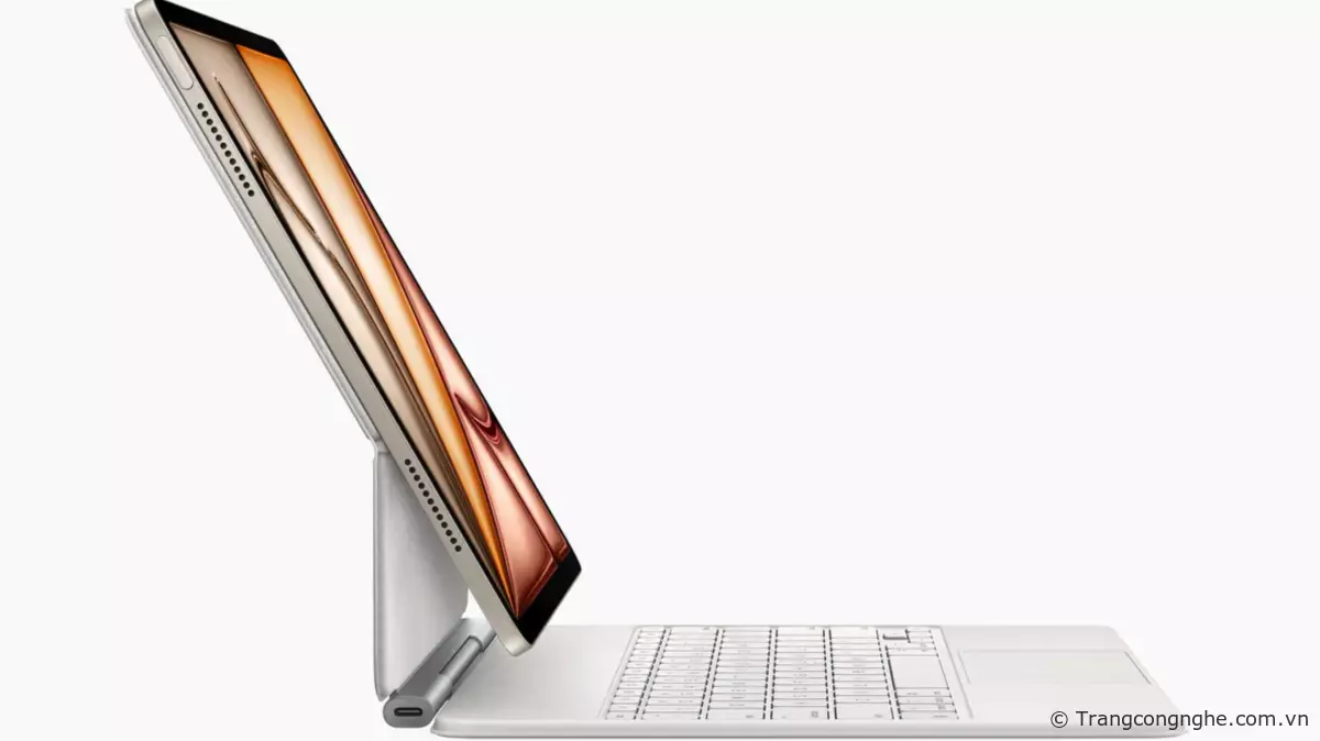 Magic Keyboard dành cho iPad Air M3 cũng được cải tiến với bàn di chuột lớn hơn và 14 phím chức năng ở phía trên, giúp điều chỉnh độ sáng, âm lượng và các tác vụ khác một cách nhanh chóng. Đáng chú ý, cổng USB-C trên bàn phím này hỗ trợ sạc nhanh hơn, mặc dù tốc độ truyền dữ liệu vẫn chưa được tiết lộ.