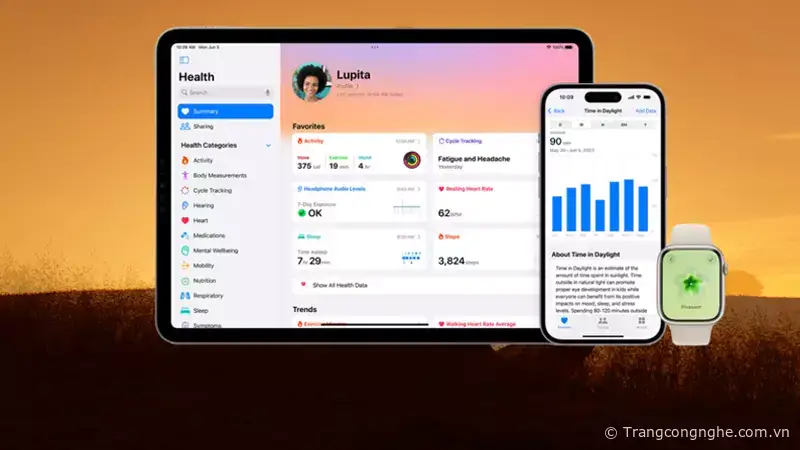 watchOS 10 sẽ cho phép đồng hồ theo dõi thời gian bạn tiếp xúc với ánh sáng ban ngày thông qua cảm biến ánh sáng được tích hợp sẵn. Viện Cận thị Quốc tế khuyến nghị trẻ em nên dành ít nhất 80–120 phút mỗi ngày ở ngoài trời. Việc dành nhiều thời gian bên ngoài hơn sẽ có lợi về nhiều mặt, bao gồm cả việc giúp cải thiện sức khỏe thị lực, khả năng theo dõi mức độ tiếp xúc với ánh nắng mặt trời có thể giúp duy trì sức khỏe đôi mắt với các thông số có thể theo dõi trực quan.