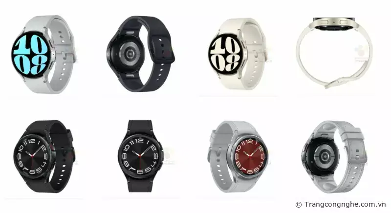 Theo những hình ảnh lộ diện, Samsung Galaxy Watch6 sẽ có các màu bạc, đen và màu be, cùng các kích cỡ mặt đồng hồ bao gồm 40mm và 44mm. Trong khi đó Samsung Galaxy Watch6 Classic sẽ có kích thước mặt 43mm và 47mm cùng hai tùy chọn màu đen và bạc.