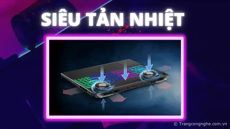 Hệ thống tản nhiệt của Acer Nitro 16 Phoenix được thiết kế một cách tối ưu để đảm bảo rằng máy luôn duy trì nhiệt độ mát mẻ. Với việc sử dụng ống đồng được sơn cách nhiệt và hai bản tản nhiệt, hệ thống này có khả năng làm mát tốt hơn cho cả CPU và GPU.