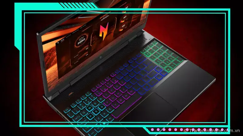 Acer Nitro 16 Phoenix có bàn phím chuẩn Gaming được trang bị đèn LED RGB 4 vùng, tạo nên một không gian chơi game chân thật với hiệu ứng ánh sáng phong phú. Ngoài ra, có sẵn các phím tắt NitroSense để người dùng dễ dàng kiểm soát mọi khía cạnh của trận đấu.