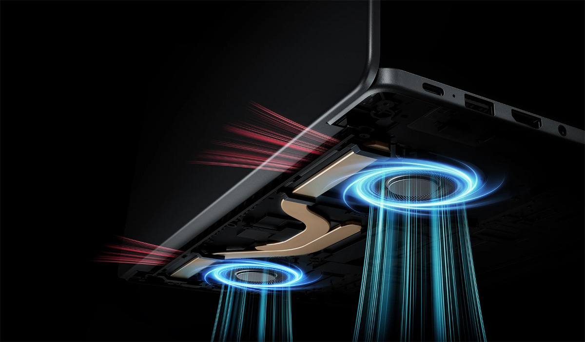 Nhằm tăng cường hiệu suất, Xiaomi trang bị cho Book 14 hệ thống quạt tản nhiệt kép mạnh mẽ, cùng ống tản nhiệt kép TDP 45W giữ cho máy mát mẻ nhưng vẫn đảm bảo yên tĩnh khi hoạt động.