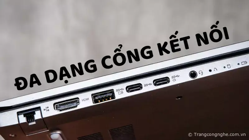 Để tăng tính linh hoạt và khả năng kết nối của laptop, bạn nên chọn những mẫu được trang bị đa dạng cổng. Các cổng kết nối quan trọng bao gồm: USB-Type A, USB-Type C, HDMI, Thunderbolt 3, VGA, LAN RJ-45.