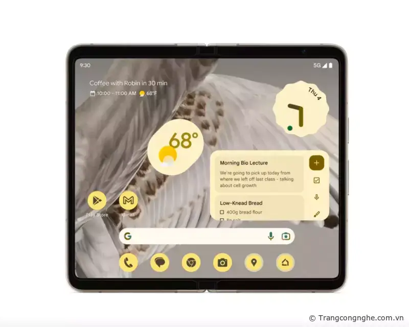 Một trong những điểm đáng chú ý trên Google Pixel Fold chính là trải nghiệm Android. Google cho biết đang phát triển tính năng "thông dịch" màn hình kép cho Google Dịch. Tính năng này cho phép sử dụng cả hai màn hình của Pixel Fold để dịch các cuộc hội thoại. Tuy nhiên, tính năng này sẽ chỉ được ra mắt khi Android 14 được phát hành.