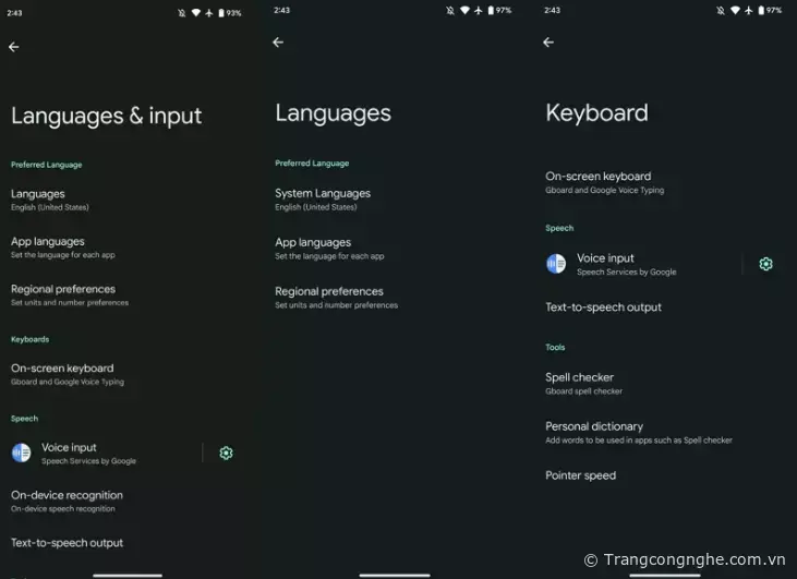 “Languages & input” được tách thành “Languages” và “Keyboard”