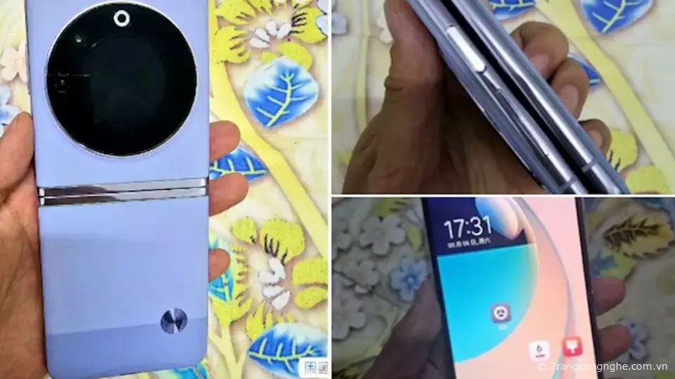 Mới đây, nguồn tin rò rỉ bởi @ParasGuglani đã tiết lộ hình ảnh và thông số kỹ thuật của Phantom V Flip 5G, điện thoại có thể sắp ra mắt tới của Tecno. Thiết bị này trông khá độc đáo với màn hình phụ bên ngoài. Tecno sử dụng thiết bị liền mạch tạo hình khối tròn với màn hình phía trong cùng cụm camera 2 ống kính + đèn flash bao quanh.