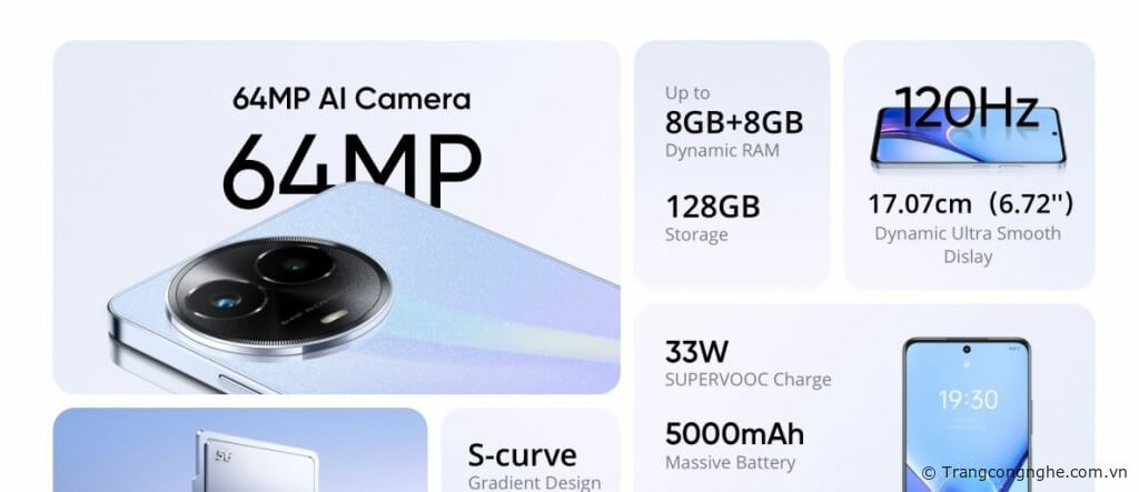 Về camera, realme 11 5G có hệ thống camera kép 108MP + 2MP ở mặt sau và camera trước 16MP. Viên pin 5,000 mAh với hỗ trợ sạc nhanh SUPERVOOC 67W và được cài sẵn giao diện người dùng realme UI 4.0 dựa trên hệ điều hành Android 13.