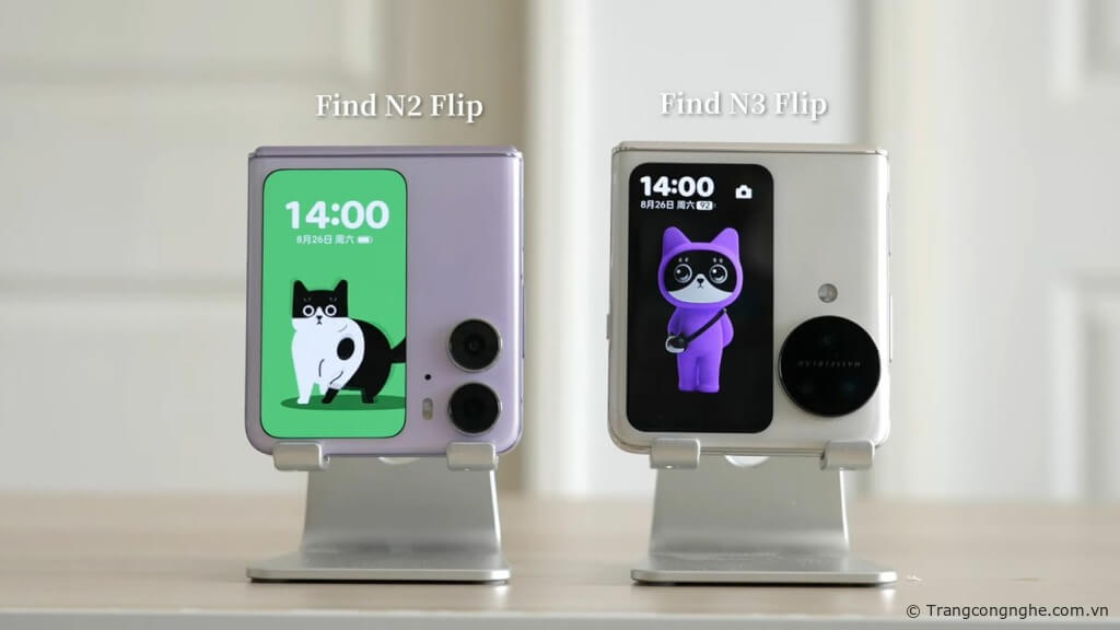 Thiết kế mặt lưng máy là thay đổi đáng giá nhất trên Find N3 Flip, nó có màn hình chữ nhật đặt dọc ở cạnh bên tương tự N2 Flip, nhưng cụm camera thay đổi hình dạng thành hình tròn giống với vivo X Flip, chiếc điện thoại gập dạng vỏ sò của vivo. Cạnh phải của thiết bị có nút nguồn tích hợp cảm biến vân tay và nút chỉnh âm lượng, cạnh trái sẽ có một nút gạt thông báo.