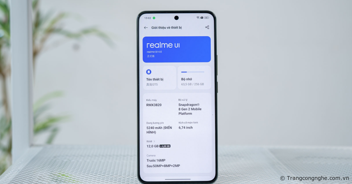 Phiên bản trong bài viết có bộ nhớ trong 256GB, RAM 12GB và đã được cài đặt phiên bản realme UI 4.0 mới nhất. Trải nghiệm trên thiết bị rất mượt mà, nhanh chóng. Tất cả các thao tác như mở đóng ứng dụng, chuyển đổi đa nhiệm hay khởi động Camera đều được realme GT5 xử lý nhanh chóng và không gặp độ trễ đáng kể.